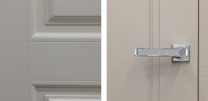 Единая плоскость у дверных полотен сохраняется с двух сторон. Это редкая особенность. Данный момент так же указывает на уровень производства и подход к деталям.