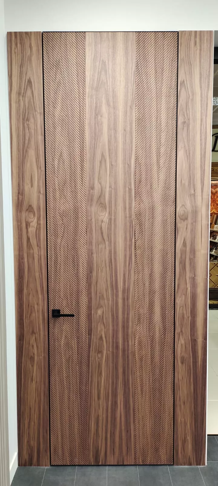 Коллекция COMBO в современном стиле выделяется частой глубокой фрезеровкой на полотнах. Двери коллекции могут быть изготовлены как в отделке из ламельного шпона американского ореха или натурального дуба, так и окрашены многослойной матовой эмалью.