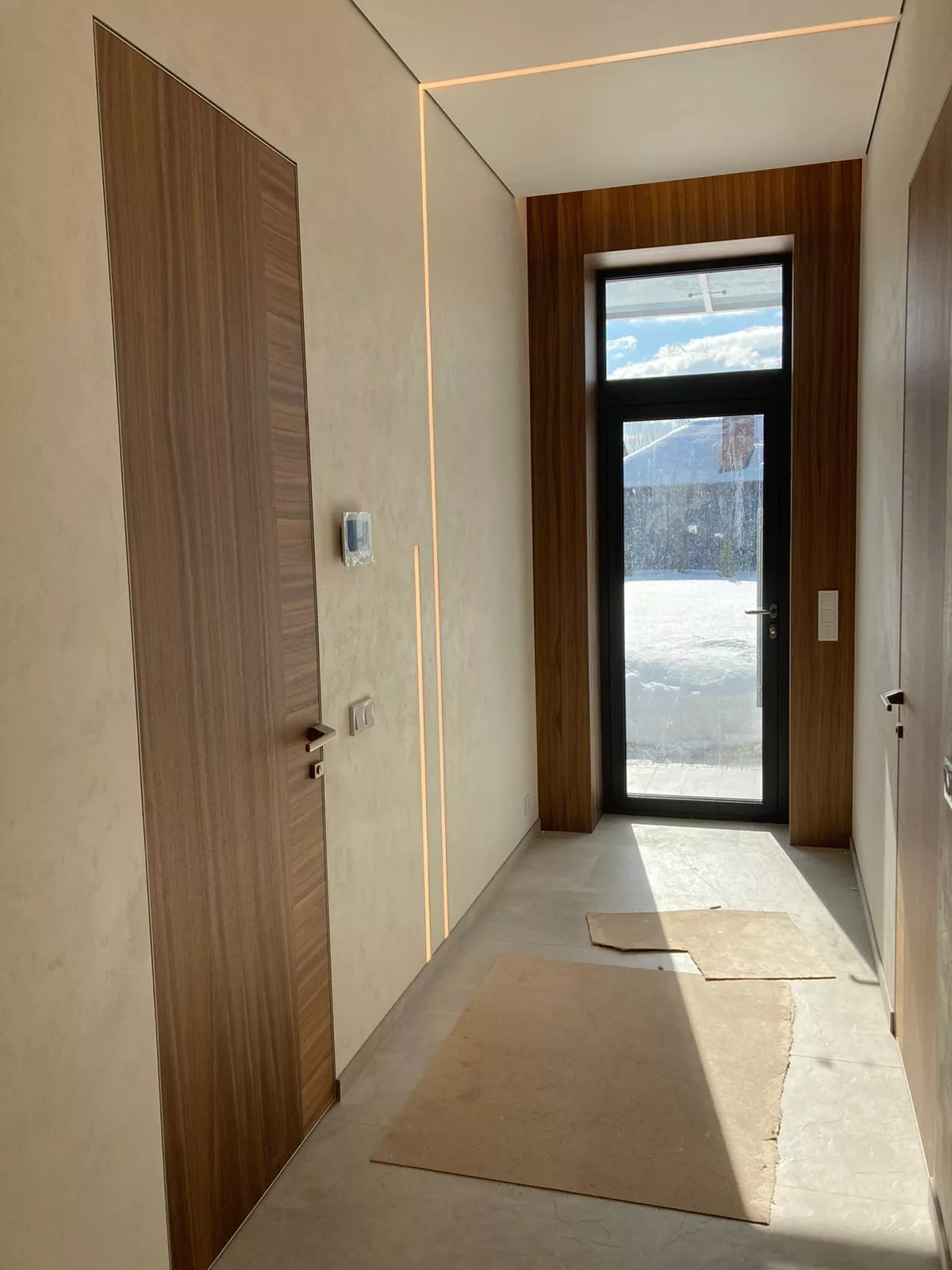 Современная коллекция дверей Piana облицована натуральным шпоном. Сейчас мы используем две совершенно разные фактуры. Шпон натурального ореха выглядит по- новому в современном дизайне дверей за счёт радиальной структуры. Традиционный дуб в необычных тонировках также выглядит свежо и актуально.