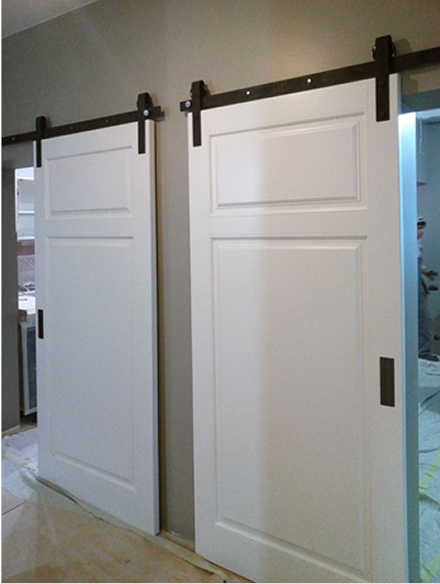 - Стандартные раздвижные двери: направляющая устанавливается в потолок или на стену.