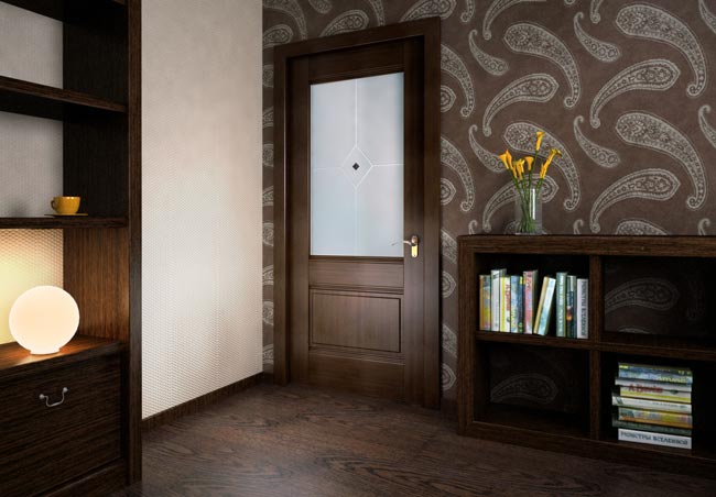 • образцы строгих «кабинетных» стилей. Такие конструкции, как правило, выполняются в древесных расцветках, оснащаются прямоугольными филёнками, решётчатыми стеклянными вставками. В самых респектабельных интерьерах уместны створки серии Piemonte, и др.
