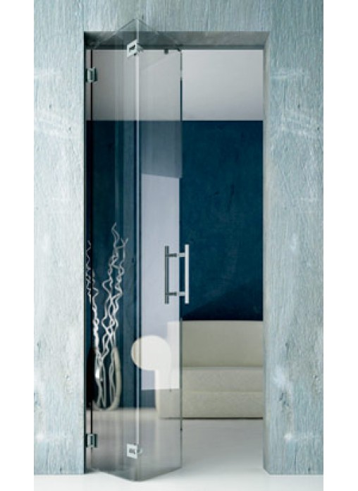 Один из самых интересных взглядов на эстетические и функциональные возможности складной конструкции демонстрирует межкомнатная дверь-книжка из стекла. Это утончённое, удивительно лёгкое и изящное изделие, способное нанести «двойной удар» по тесноте и ограниченности самых сложных участков жилого пространства. Модель представляет собой союз двухкомпонентного полотна и откатного механизма. Освобождая проём, створка плавно ускользает к его краю и останавливается перпендикулярно стене, приобретая сложенный вид.