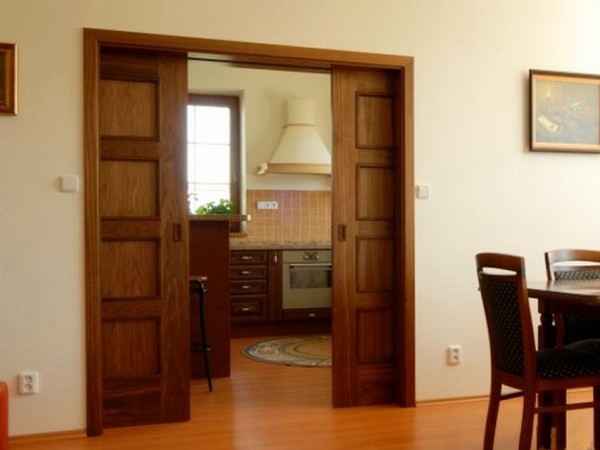• купейная дверь со шпоном на кухне - технически простое, но функциональное инженерное решение, которое можно приобрести по весьма привлекательной цене;