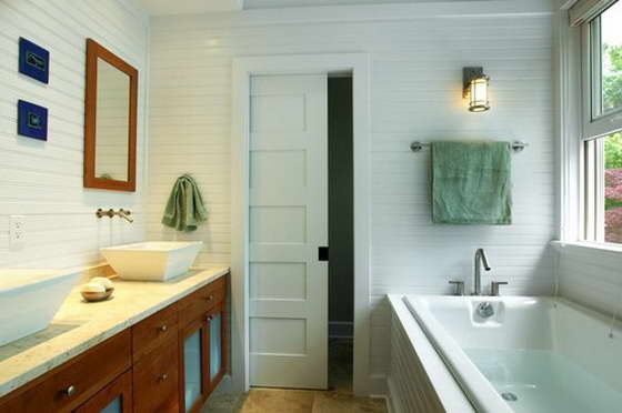 Чтобы купить дверь в ванную с коробкой недорого, хозяева обращают внимание на погонажные изделия из ПВХ, а также плиты МДФ, использованной отдельно либо в сочетании с хвойным массивом. Такие варианты отличаются лёгкостью, устойчивостью к влаге, постоянной геометрией. Правда, для комплектации тяжёлых моделей они не подходят. Более добротными считаются конструкции, выполненные: