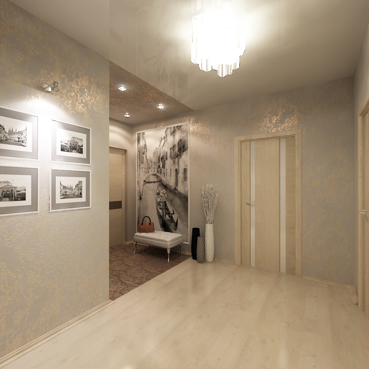 • прихожую или коридор. Помещения, которым недостаёт естественного света, обретут его эффективные источники в лице полотен с нежно-серебристым покрытием;