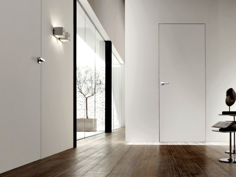 Стильная новинка от итальянских дизайнеров, позволяющая каждому хозяину становится творцом собственного неповторимого интерьера, - дверь без наличников под покраску. Модель, не предполагающая установки декоративного обрамления, имеет скрытый тип монтажа. Это значит, что все элементы, удерживающие её в проёме, полностью скрыты из поля зрения. А приложив небольшие усилия, можно заставить «исчезнуть» и полотно. Очевидно, что при таком типе исполнения в погонажных элементах попросту нет необходимости.