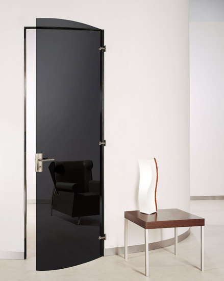 • внутреннее свечение. Прозрачность дверей из чёрного триплекса варьируется в зависимости от толщины стекла и интенсивности цвета. Но, даже скрывая обзор, они пропускают небольшое количество света и рассеивают его, делясь с пространством таинственным мерцанием. А различные техники художественной обработки позволяют усовершенствовать данный эффект, предлагая новые варианты обыгрывания лучей.