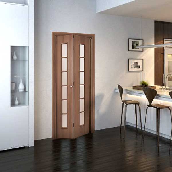 • аксессуары для полной оснастки модели. Собственно, межкомнатные двери книжкой от производителя поставляются в уже готовом наборе. Он включает два сегмента полотна, короб, механизм, замок, уплотнители, наличники и другие элементы. Нет нужды обращаться к кому-то ещё или самостоятельно подбирать аксессуары. Дело за малым - собрать и закрепить систему в проёме;