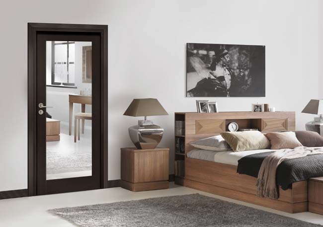 - дерева. Не имеет значения, изготовлено изделие из ценного массива или комбинации сосны и МДФ - отражающие элементы «к лицу» любым решениям. Их успешно задействуют в оформлении классических филёнчатых полотен, чередуют с узкими планками в составе царговых створок, объединяют с гладкими поверхностями ультрамодных конструкций. Для любого пространства можно купить деревянную межкомнатную дверь с зеркальными вставками - она изысканна и универсальна;