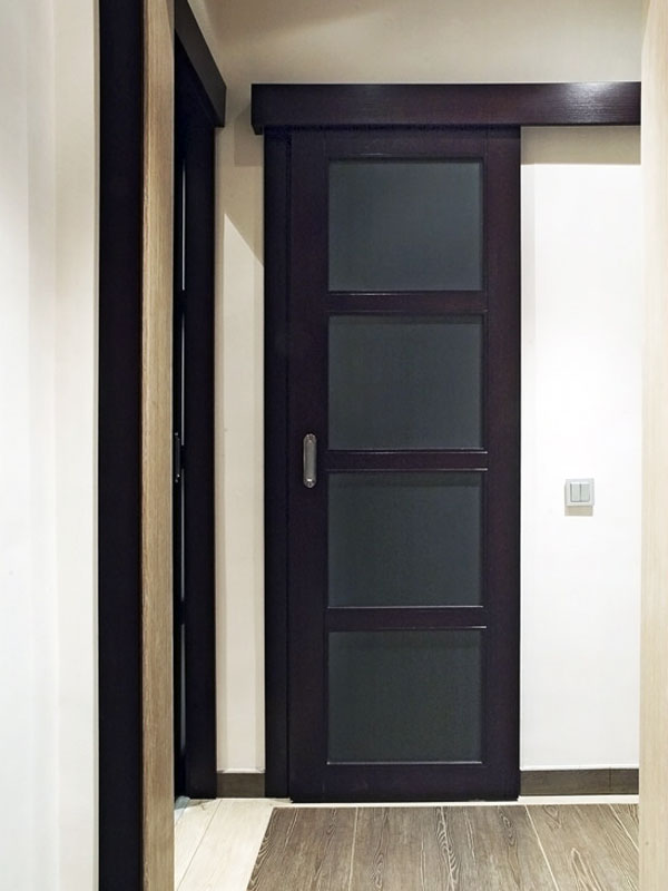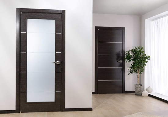 Двери цвета Венге с матовым стеклом выглядят так же ярко, как их глухие собратья, но при этом: