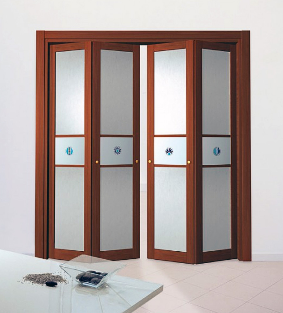 Двустворчатые конструкции - несомненные украшения интерьеров. Они торжественны, величественны, элегантны, вот только занимают немало места. В небольших комнатах распашные модели такого типа устанавливать не рекомендуется, поскольку велик риск отяготить пространство и усугубить его недостатки. А как насчёт складных? Двойные двери-книжки куда более компактны, благодаря чему легко приспосабливаются к нуждам малогабаритных помещений.