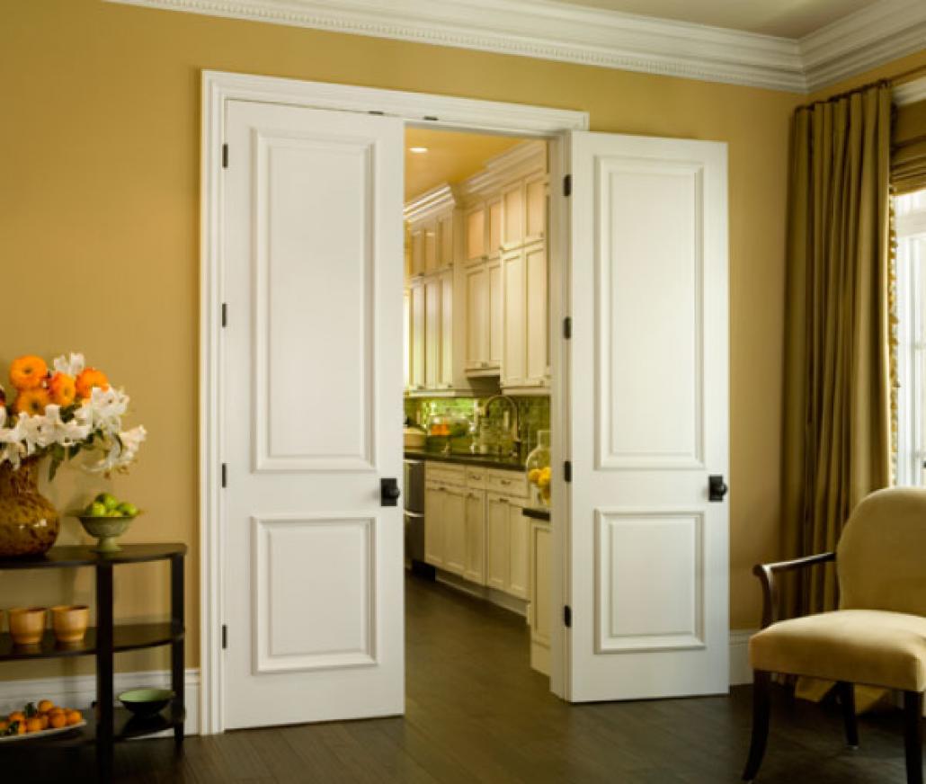Двухстворчатые двери из МДФ в отделке шпоном, эмалью, ламинатом - продажа и установка
