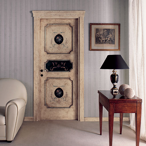 С другой стороны, в классические интерьеры подобные решения вливаются не менее органично. Эффектная дубовая створка, декорированная резьбой, обработанная патиной, увенчанная фигурным порталом, - нарядный и эксклюзивный элемент традиционной композиции.