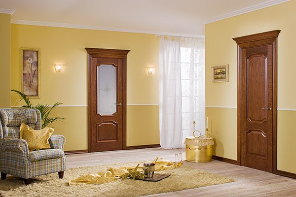 Приверженцам натуральных материалов и традиционных интерьерных решений адресованы массивные филёнчатые двери. Создаваемые из твёрдой и ценной древесины дуба, ясеня, бука либо заключающие в основе более доступную сосну, межкомнатные конструкции данной разновидности идеально аккомпанируют ансамблям гостиных, кабинетов, элегантных спален.