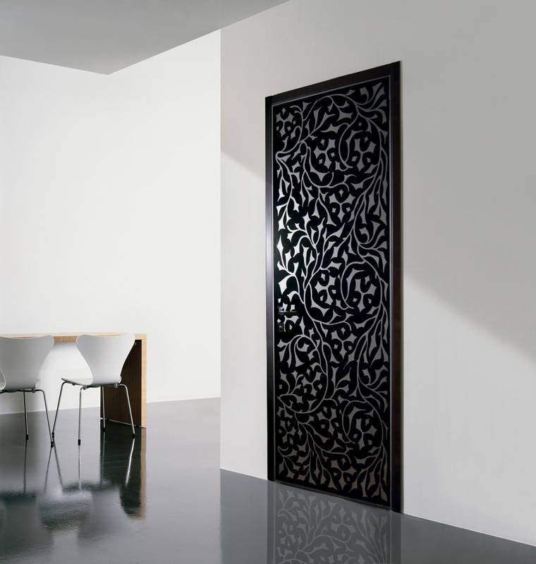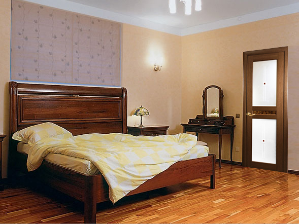 Купить матовую дверь в спальню с любым характером позволяют различные украшающие элементы и дизайнерские приёмы. На створках создаются орнаменты разной тематики - растительной, абстрактной, этнической. Наносят их с помощью гравирования, художественной росписи, фотопечати. Великолепно смотрятся модели с витражами. Матирование нередко объединяют с тонированием и т. д.