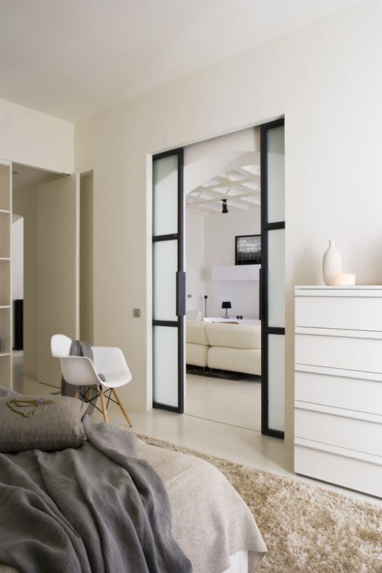 2. в организации гардеробных. Довольно часто стеклянная матовая дверь в спальню устанавливается как инструмент отделения участка для хранения одежды, постельных принадлежностей и других предметов. Благодаря внешней невесомости и изяществу модель не отяготит композицию. А её универсальная эстетика открывает возможности для гармоничного оформления пространства, подчинённого любому стилю и выполненному в любых расцветках.