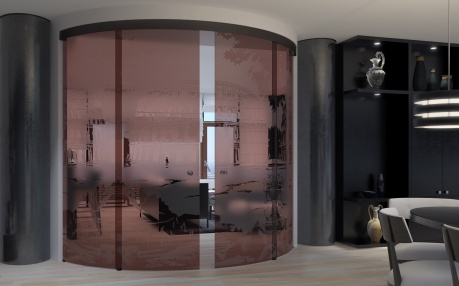Мечту об открытом, свободном, невесомом пространстве претворяют в реальность откатные межкомнатные двери из стекла. Сквозь них проходит свет, приобретая новые удивительные качества благодаря различным техникам декоративной обработки. Они наполняют комнаты воздухом и устраняют чёткие границы, позволяя одной зоне плавно переходить в другую. При выборе таких решений не нужно беспокоиться о том, что они отяготят интерьер или нарушат общую эстетическую концепцию обстановки. Светопрозрачные модели гармонируют с помещениями любого типа, размеров и дизайна, без труда растворяясь в них.