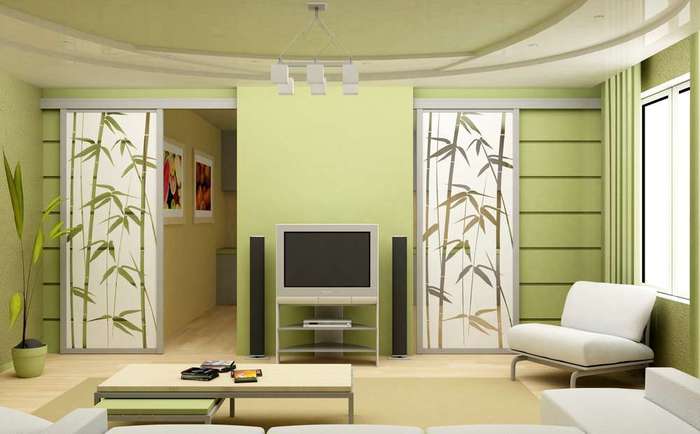 • разделить крупногабаритное пространство без строительства новых стен. Откатные системы активно применяются в роли перегородок. Они приобретают актуальность, когда требуется зонировать студию с формированием в ней спального или рабочего места. С их помощью легко создавать гардеробные в спальнях или столовые в границах гостиных.