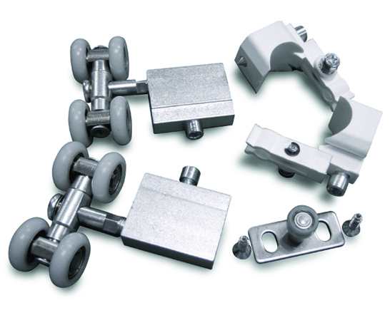 • навешивание створки с применением роликовых механизмов, подобранных согласно её размерам и массе. Современные каретки позволяют регулировать положение секции относительно стены и уровня пола;