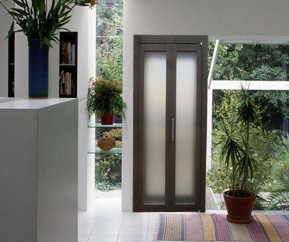 • изолирующие свойства. Установить складывающуюся стеклянную дверь позволительно и в гардеробной, и в ванной, и в спальне. Матирование, тонирование, рифление, многие другие техники обработки делают их непроницаемыми для взглядов.