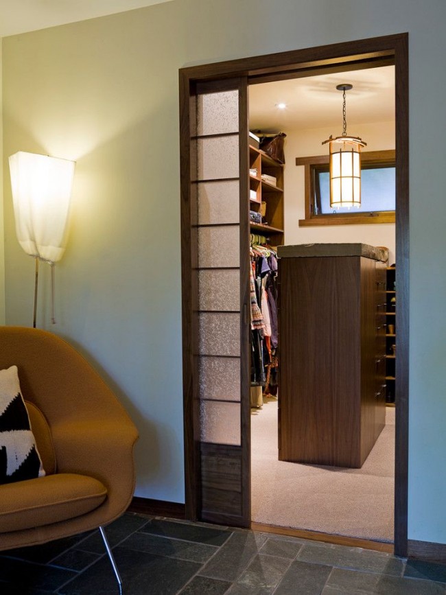 1. оборудовать все проёмы, сконцентрированные в помещении, в единой стилистике и цветовой палитре. Не стоит опасаться того, что раздвижная конструкция станет плохим компаньоном для распашных моделей - они превосходно сочетаются друг с другом;