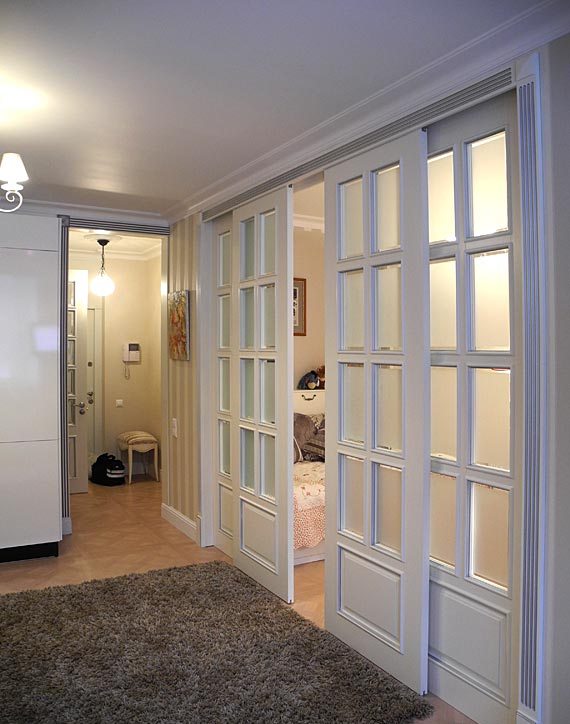 Раздвижные системы широко применяют в сегментировании квартир-студий.
